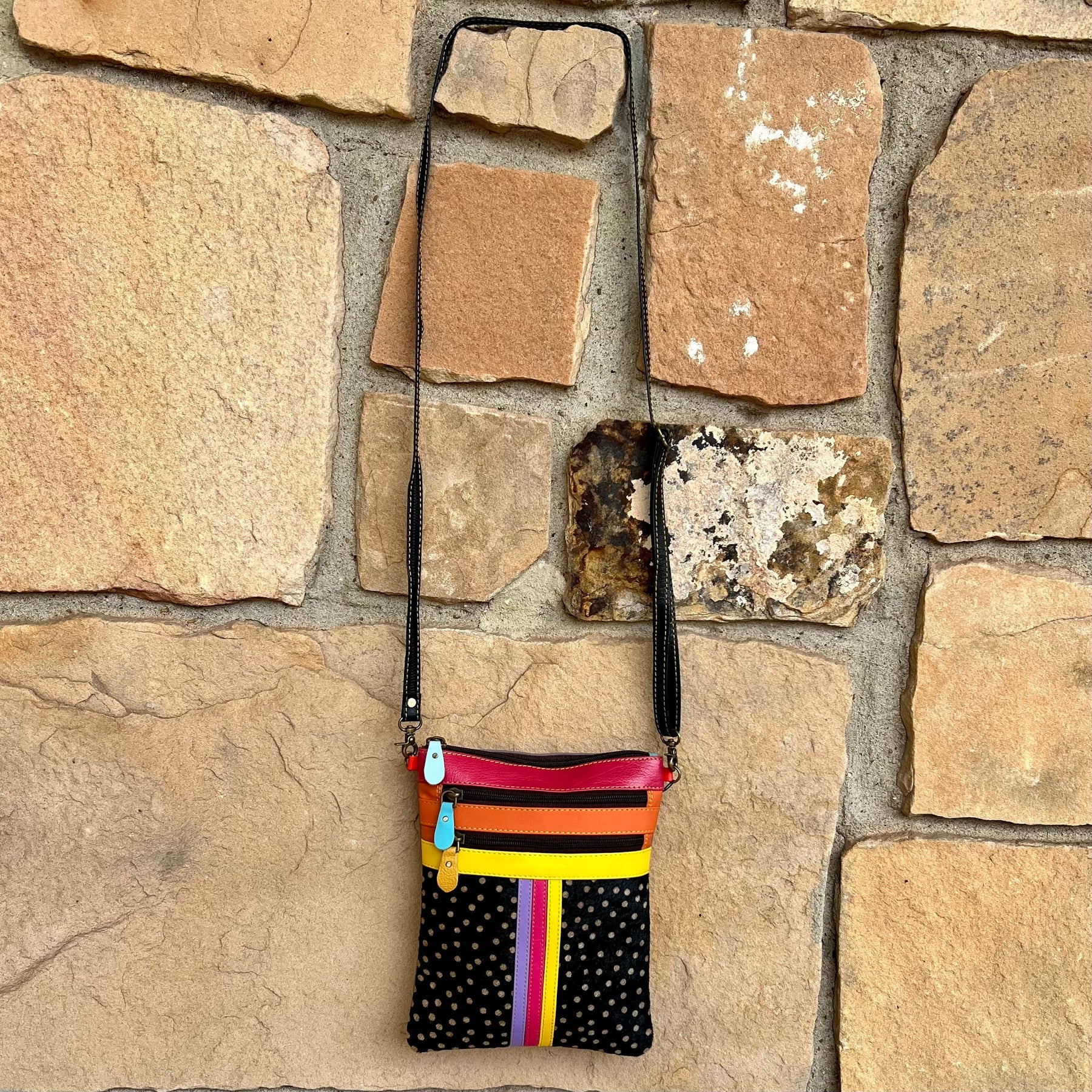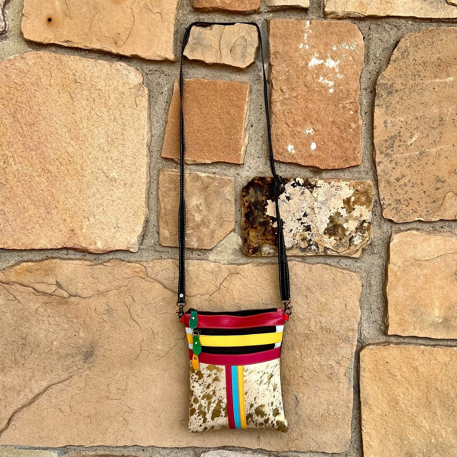 Make a statement with the Kaizer Crossbody. Available in two unique color options, this stylish and sophisticated bag is crafted with multi-colored leather detail and an adjustable, removable strap for convenience. Its distinctive pattern and modern design makes it perfect for bringing luxury to any look. 9"H X 7"W