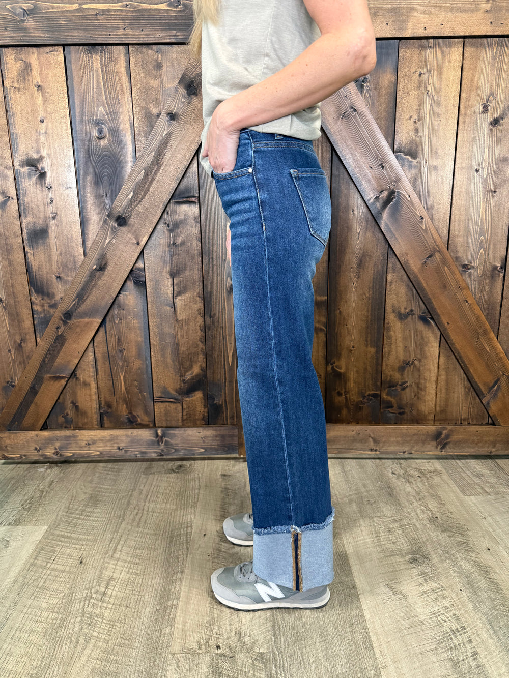 Risen Dark Wash High Rise Ankle Wide Cuffed Jeans