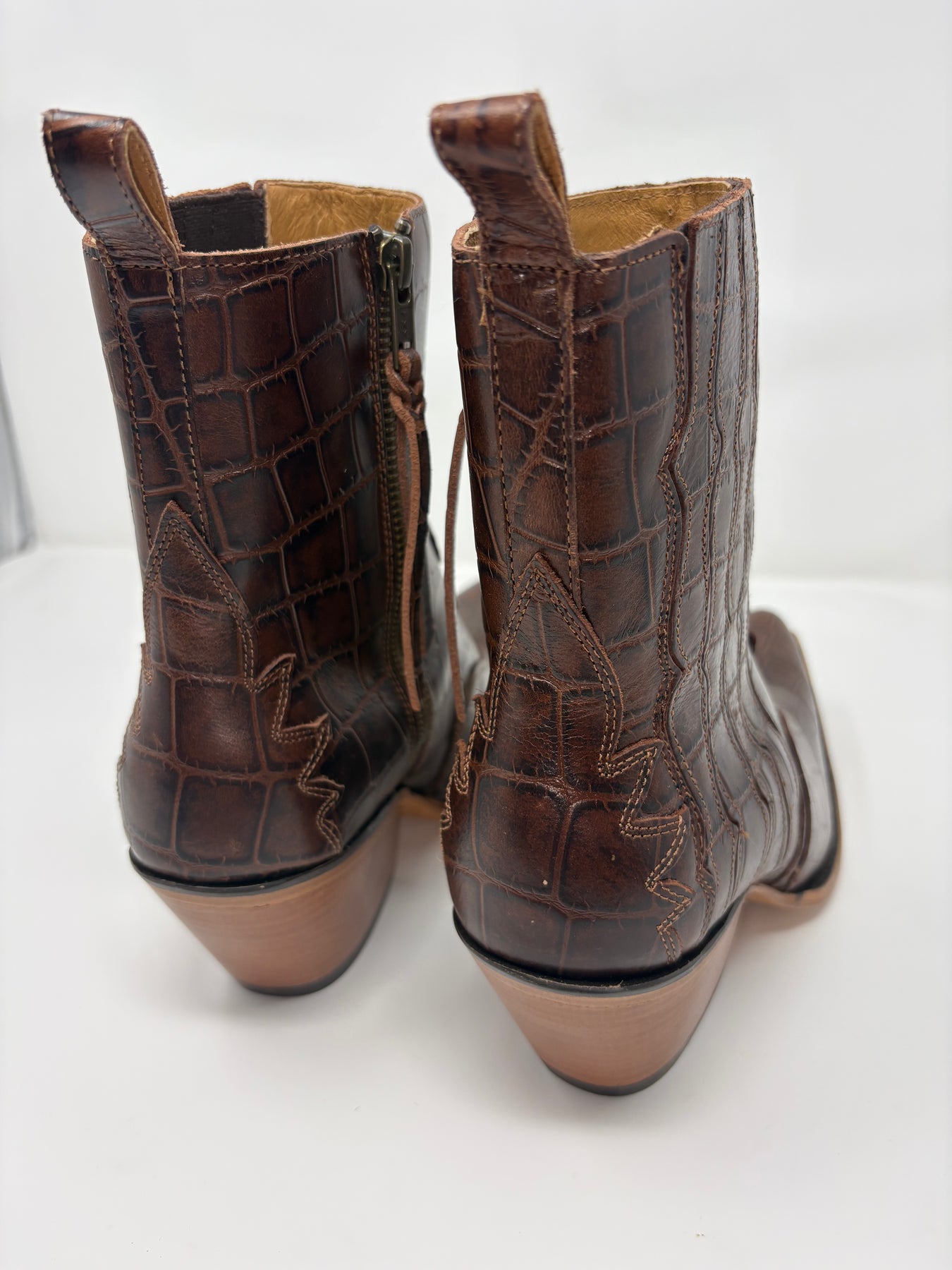 Step into sophistication with the Ariat Women's Jade Luxe Espresso Croc Booties—where style meets comfort. These stunning booties feature a luxe croc texture in rich espresso tones, paired with a flattering 2.5" New West heel that's perfect for all-day wear. The 6" shaft height offers elegant coverage, while the X toe design adds a modern twist to a classic silhouette. Whether you're heading to brunch or a night out, these beauties deliver the perfect blend of sass and substance.
