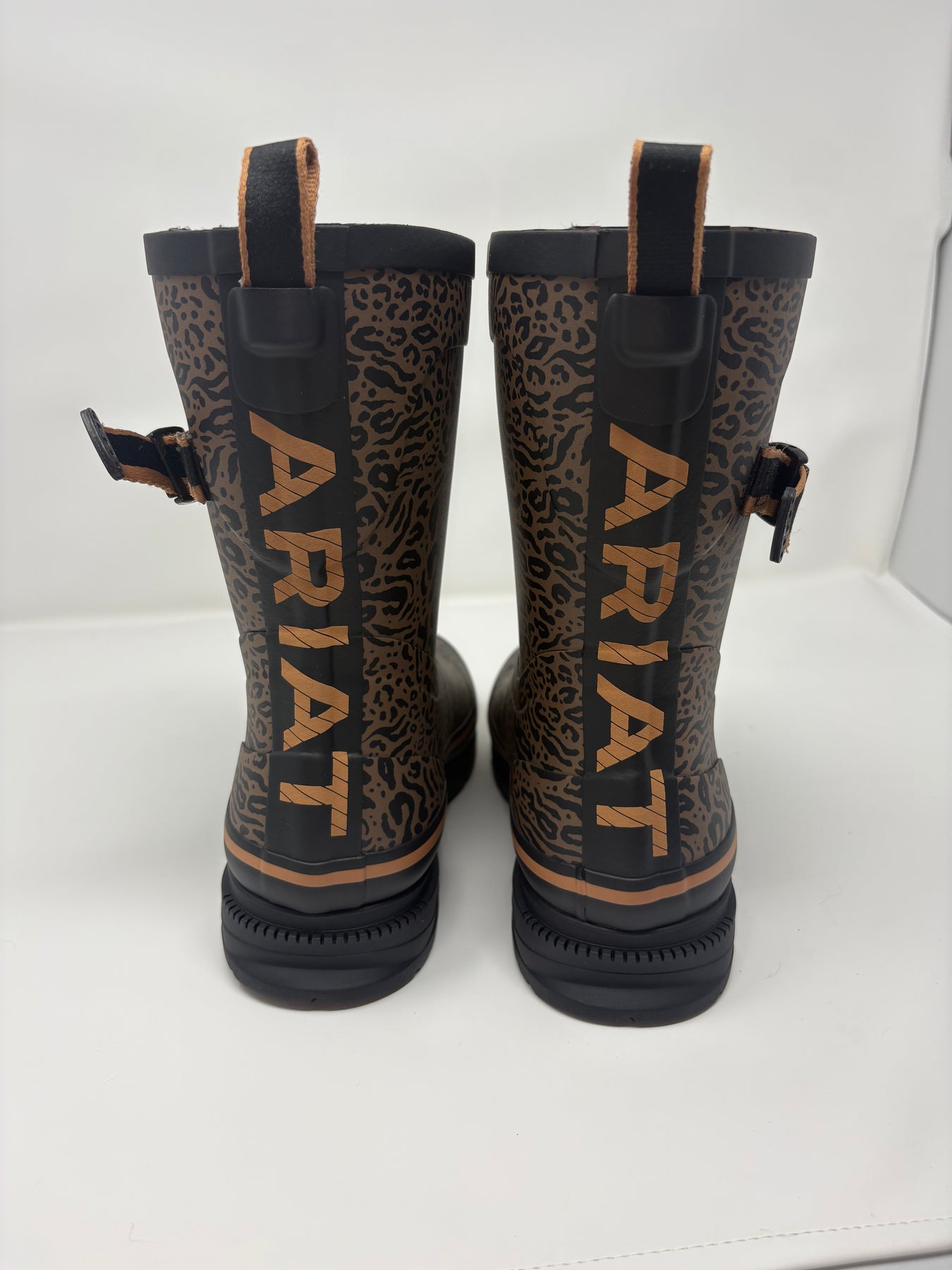 Step into style with these Ariat Women's Kelmarsh Mid Calf Rubber Boots, where practicality meets personality. Featuring a cheetah print design that roars with attitude, these boots boast a comfortable 9" shaft, 1.5" heel and adjustable side strap that keeps you grounded without sacrificing flair. The round toe design offers easy movement, while durable rubber construction handles whatever weather comes your way. Perfect for making a bold statement while staying dry and protected.