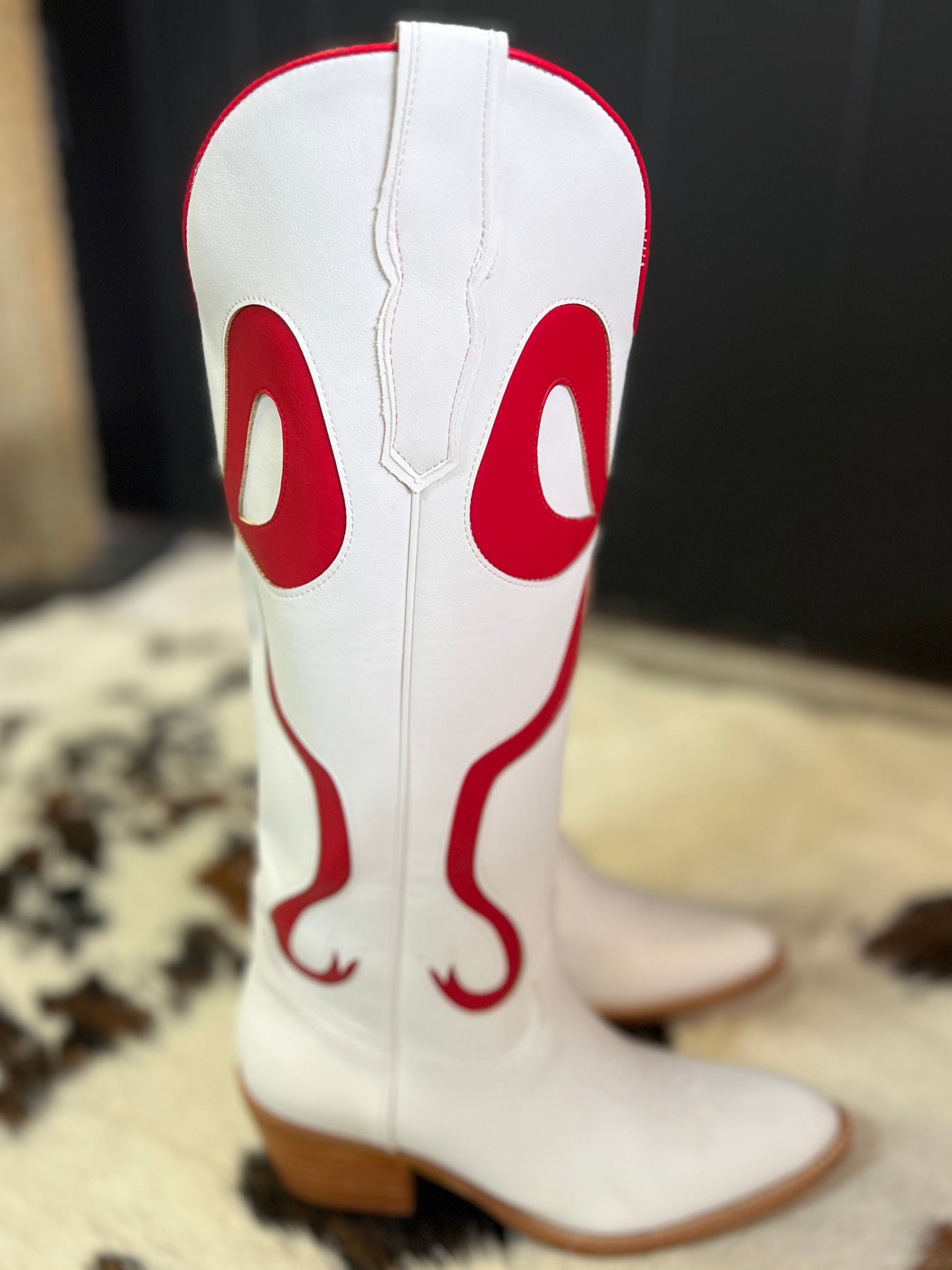 Upgrade your style with our White and Red Bow Boots. These on-trend women's western boots feature red bows and a boot stitch design for a stylish touch. The side pull tabs make them easy to slip on and off, while the comfortable fit will have you walking with confidence. Available in standard sizes.