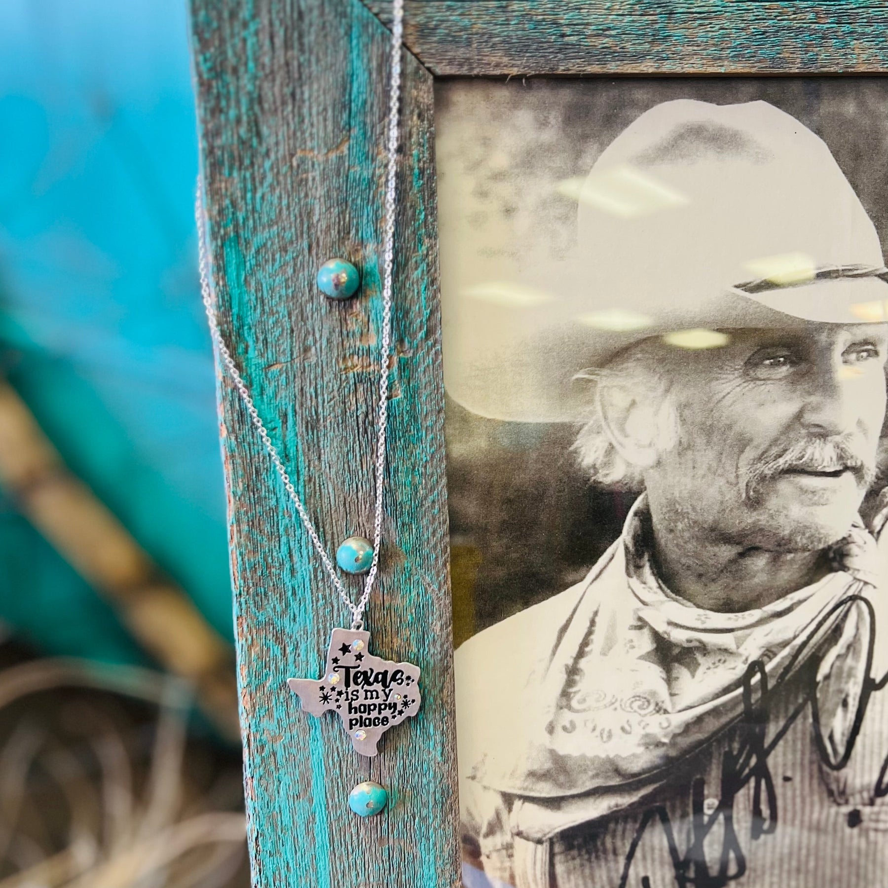 The Texas Is My Happy Place Necklace is a adorable silver State of Texas shape with the words" Texas Is My Happy Place" stamped on it with burst stamped around it. It is the perfect size and shape. The Texas Charm is 1 1/2" X 1 1/2" in size and on a 18" adjustable silver chain.