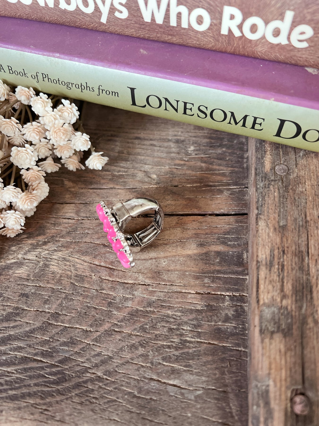 Elevate your western fashion game with our Pink Stone Concho Stretch Ring! The stunning pink stones add a touch of elegance to this must-have western accessory. Thanks to its stretch design, this ring is one size fits most, making it the perfect addition to any outfit. Don't miss out on this stylish and versatile piece!