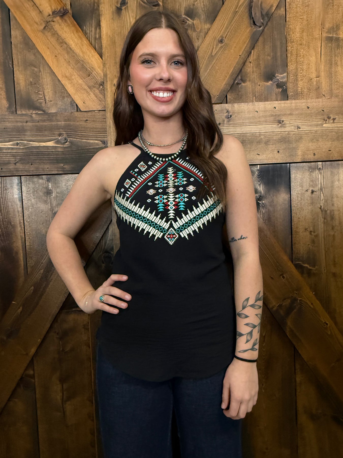 L&B Black Multi Aztec Embroidered Halter Top I Gussied Up Online Boutique