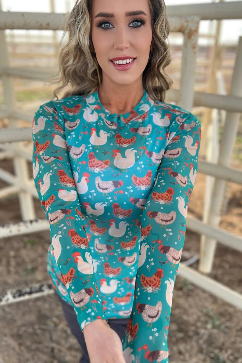 Be the envy of the flock with our Fly The Coop Mesh Top! This cute and adorable top features a stylish chicken design that will keep you comfy and looking fly. Don't be a chicken, add some fun to your wardrobe!