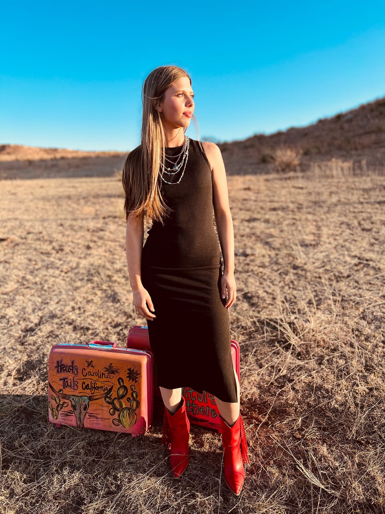 Step out in style with the Don't Let The Door Hit Ya Dress! This sleek and form-fitting black body-con dress is perfect for any casual occasion. With a trendy side slit, ribbed texture, and sleeveless design, this dress will have you looking and feeling confident. Support a small business and elevate your wardrobe with this must-have piece from our women's boutique.
