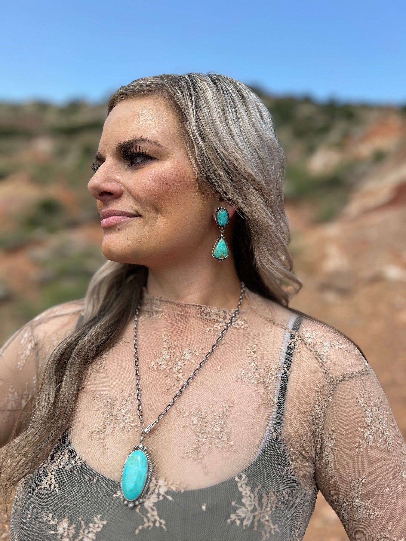 This unique piece of jewelry from the SS Kingman Turquoise Collection is a timeless piece crafted with luxurious details - made with sterling silver and a handcrafted SS Kingman Turquoise Concho pendant, this necklace is sure to exude sophistication and exclusivity. Perfect for any special occasion, this necklace is handmade by Navajo artisans from Gallup, New Mexico.
