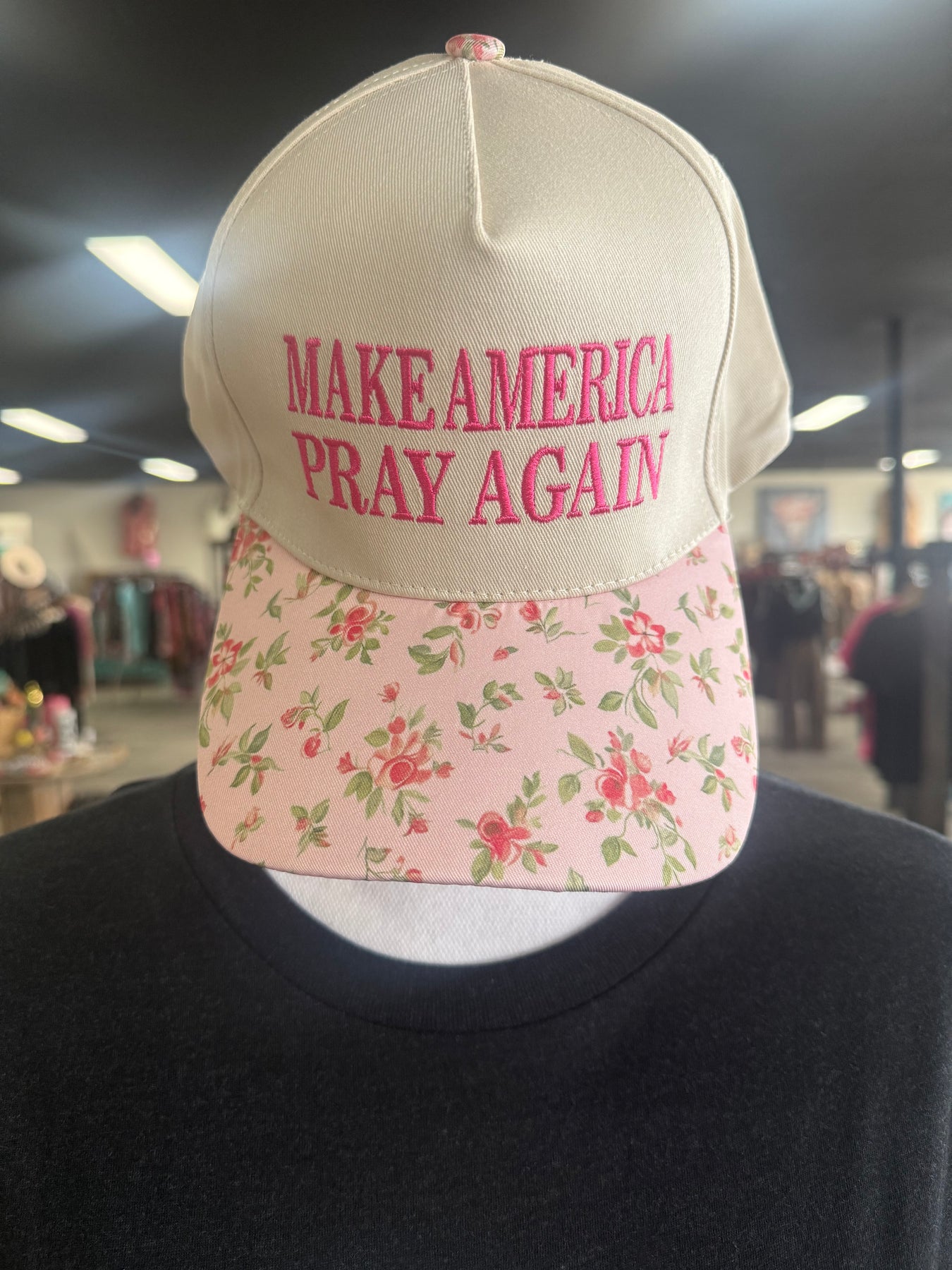 Make American Pray Again Two Tone Canvas Cap in two stunning styles: pink floral & Ash Mocha. Crafted from durable canvas with a chic two-tone khaki design, this adjustable cap offers the perfect fit for any head size. Whether you're running errands or soaking up the sun, this versatile accessory pairs effortlessly with any outfit. Choose your favorite pattern and wear it with pride.