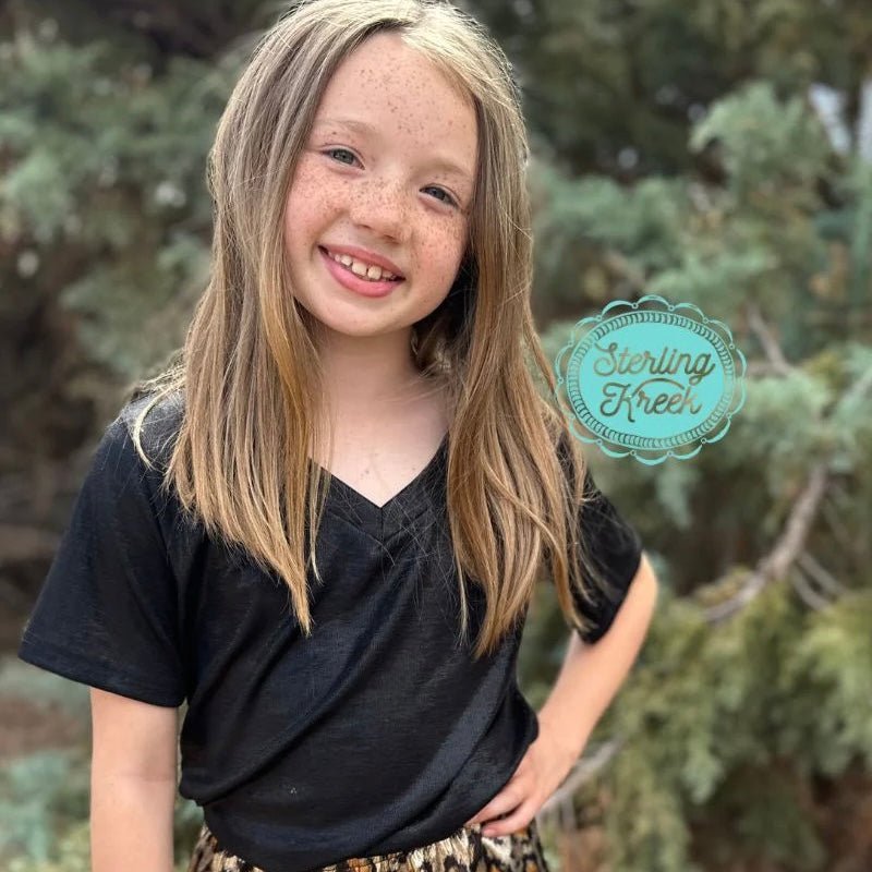 Dress your kiddos in our newest MINI MIDNIGHT RAIN TOP for a sparkly night time look. With this sleek BLACK METALLIC TOP, they can take on the night like no other! Shine brighter than the stars and make their fashion dreams come true. Get yours to match your mini too!