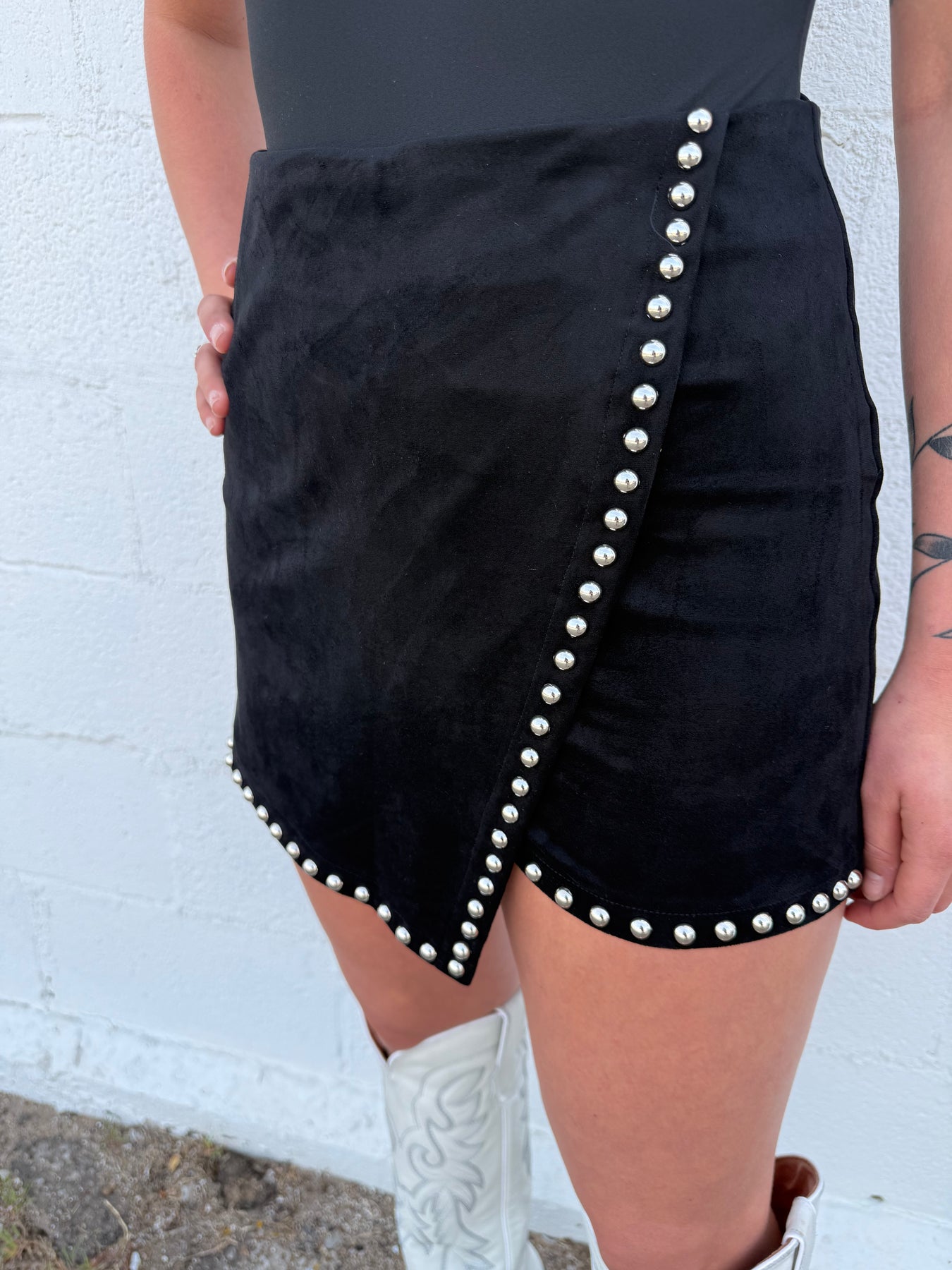 L&B Black Stretch Suede High Rise Studded Skort I Gussied Up Online Boutique