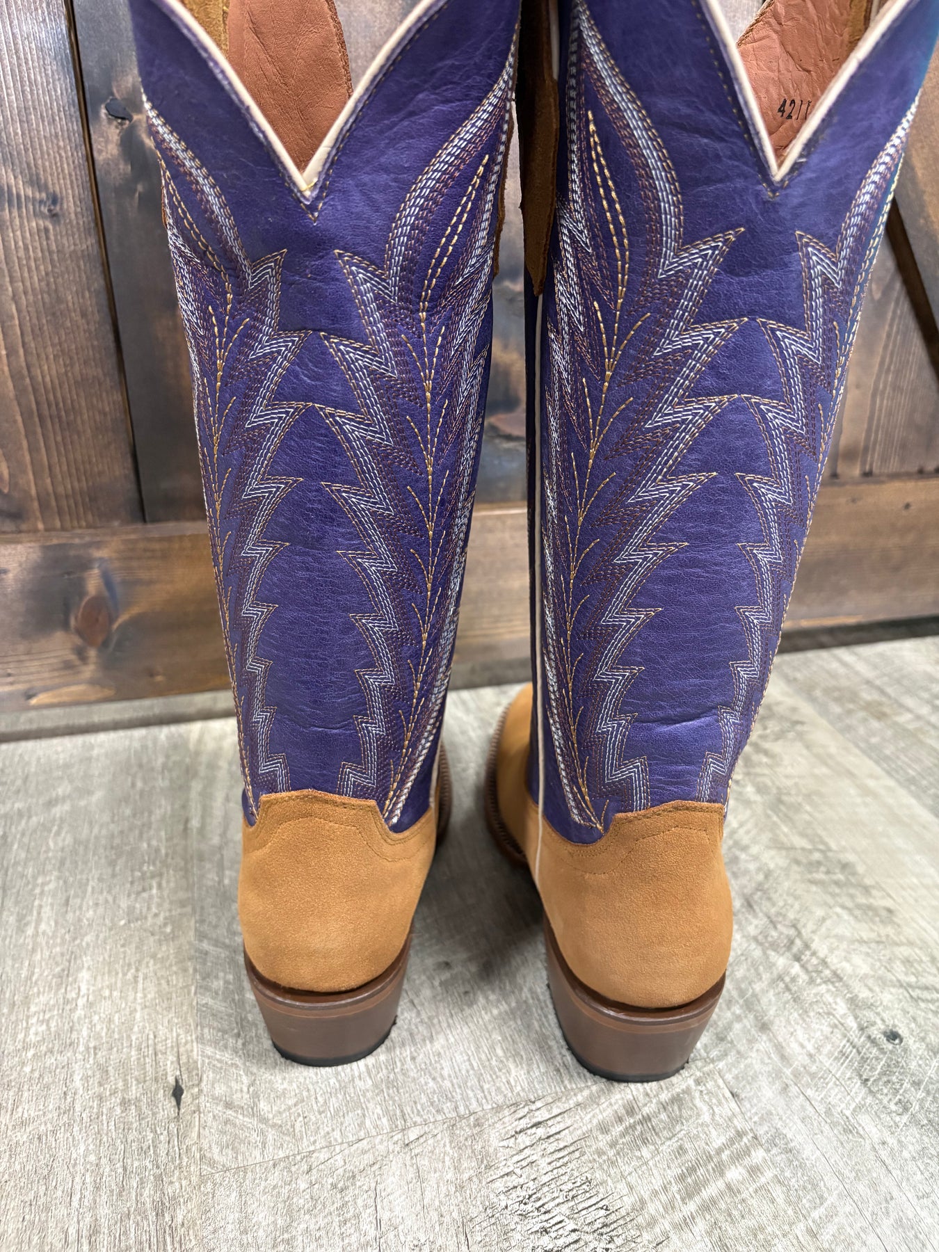 Step into serious style with these Tanner Mark Women's Camel Boots w/ Purple Tops Featuring a striking square toe and eye-catching boot stitch detailing, these 14" beauties deliver Western flair with modern edge. The rich camel suede and purple tops add instant personality to any outfit—dress them up for a night out or keep them casual with your favorite jeans. Built for comfort and confidence, these boots are ready to become your go-to pair for making a statement.