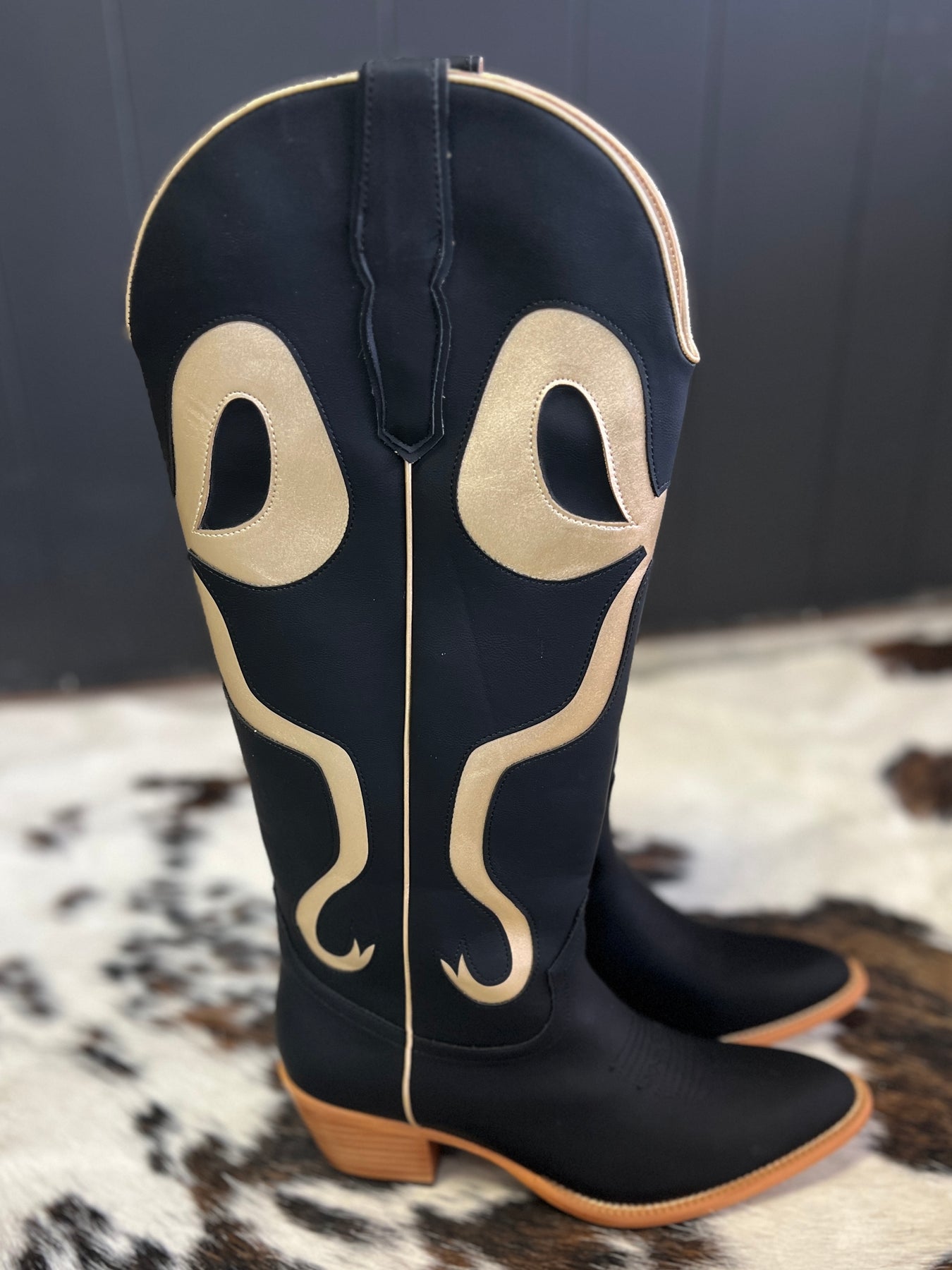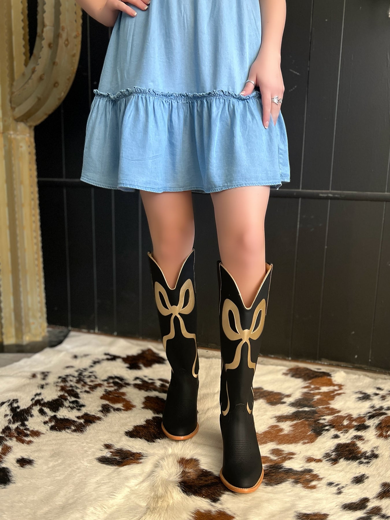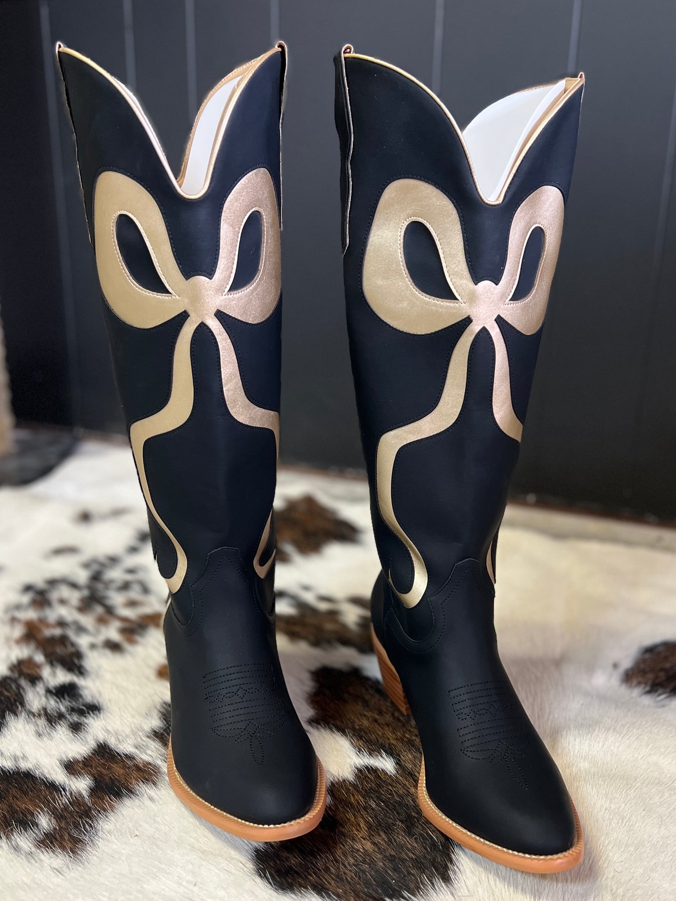 Black and Gold Bow Boots