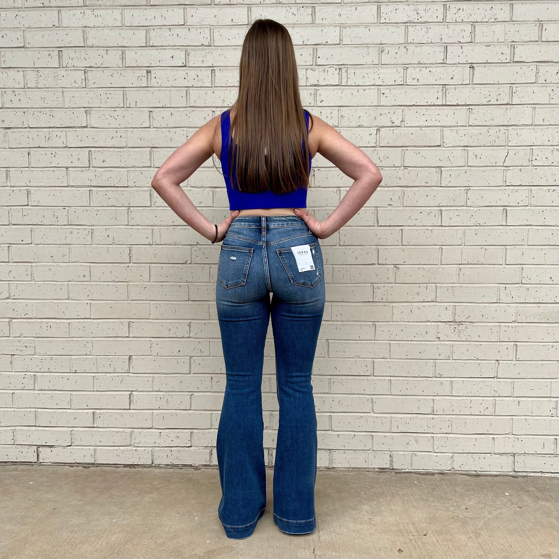 Baby's Got Her Blue Jeans On Jeans are designed to flatter your figure while providing all-day comfort. Constructed with a high rise and wide cuff, these jeans offer a figure-hugging fit. A medium wash gives a timeless look to the denim. Supportive yet stretchy fabric ensures a comfortable fit.