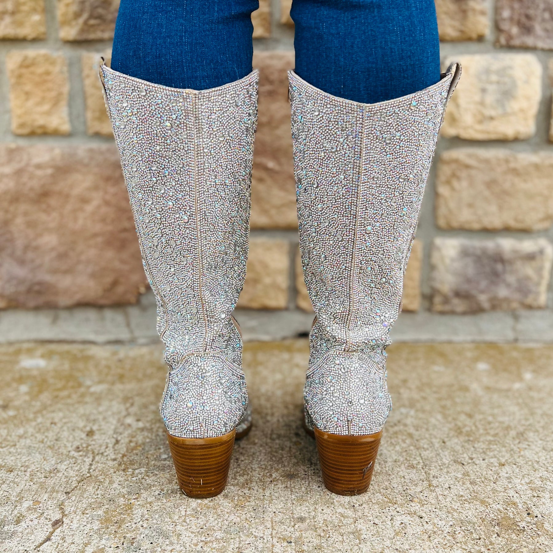Glitz & Glam Silver Rhinestone Boots*