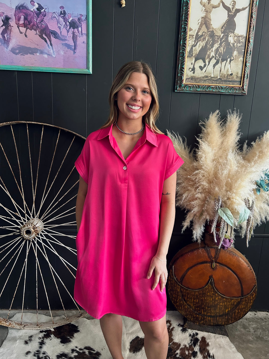 Rose Red Buttoned Collar Mini Dress*