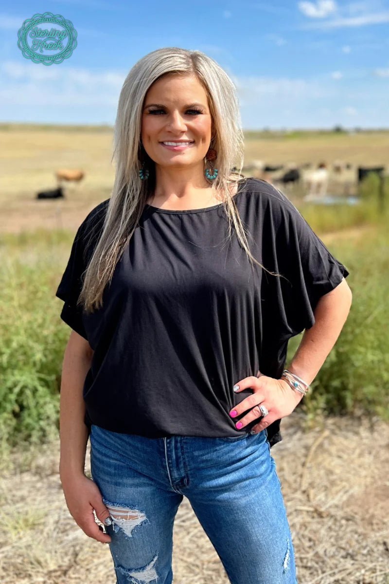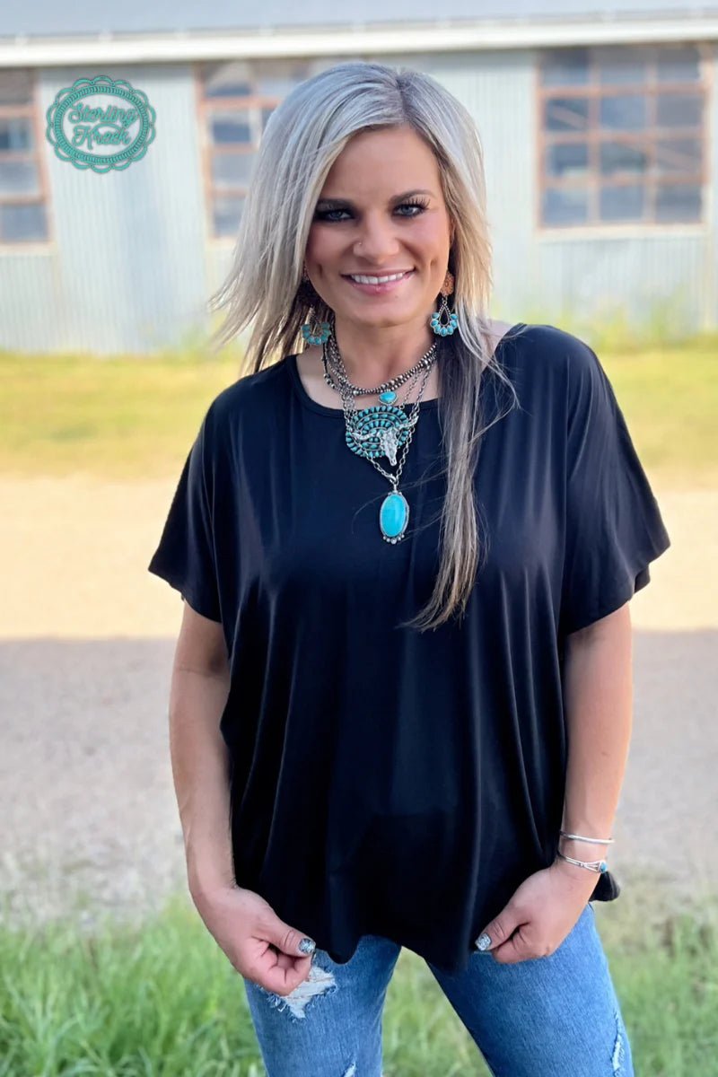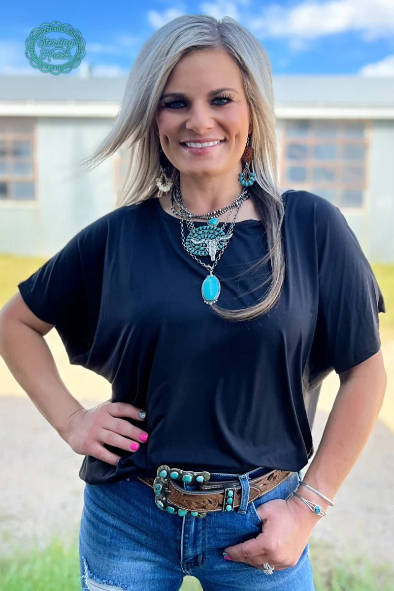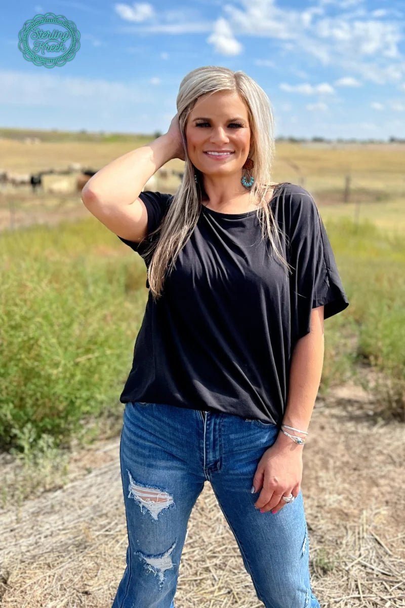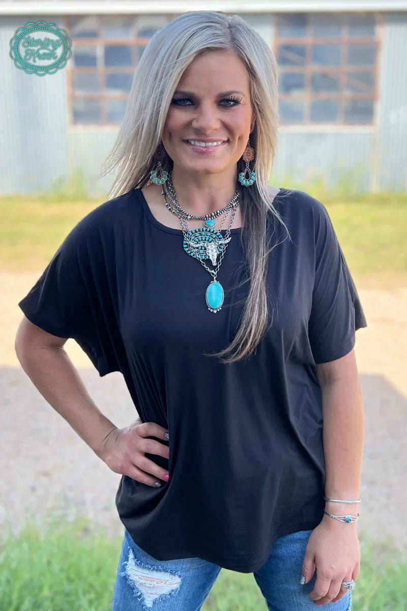 Reel in style with our Fishing In The Dark Top! This solid black oversized top is perfect for a casual day out or a fun night out. So why wait? Cast a line and catch this top today!