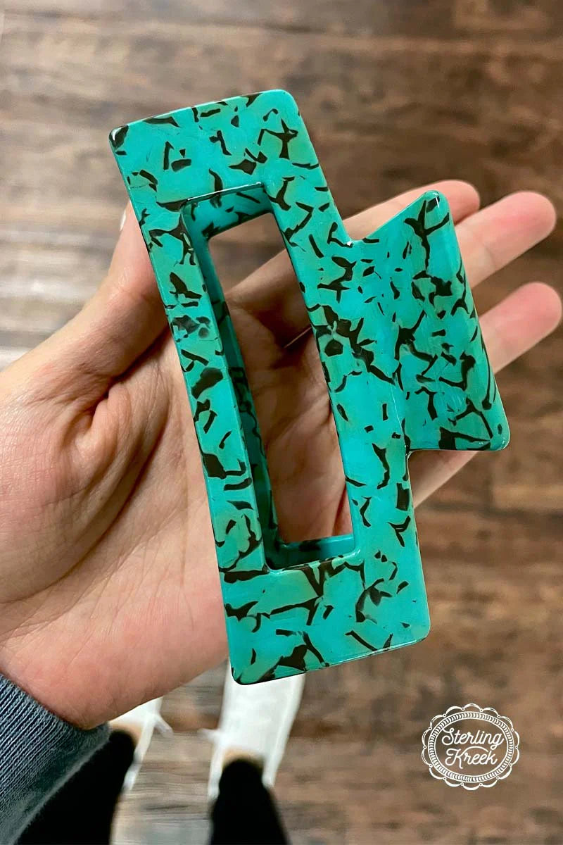 This marbled turquoise hair clip is perfect for those bad hair days! Ladies these are a fashion statement that you don't want to miss out on! They are perfect for all hair types & can hold!