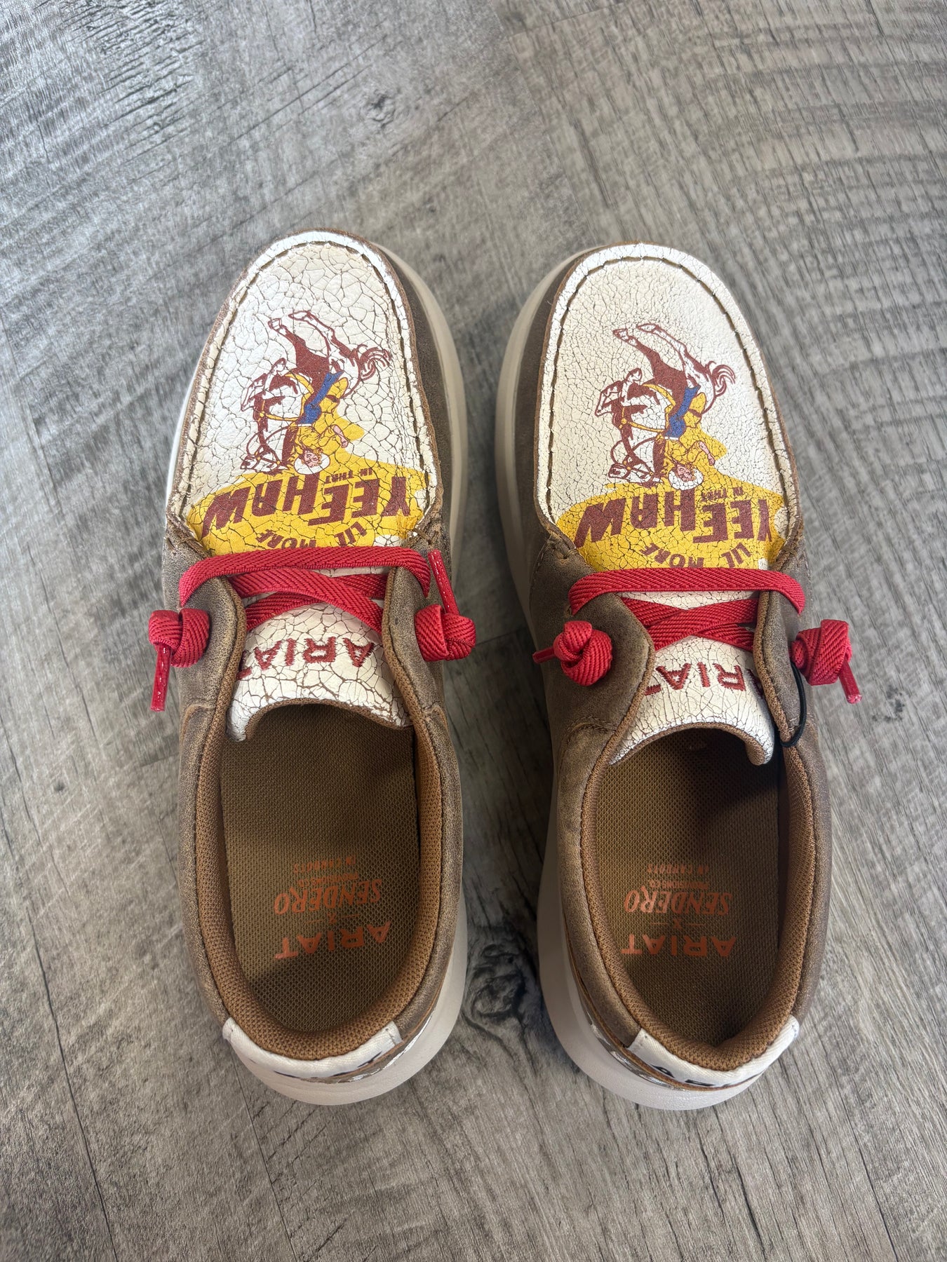 Step into fun with the Women's Ariat Hilo Sendero Shoes! These brown leather slip-ons boast a quirky retro graphic and a comfortable 3" height that’s perfect for standing out. Inside, an open cell cushioning insole and a light, springy FLX Foam sole make every step feel like a bounce. Elasticized laces ensure easy on-and-off wear, while your purchase supports responsible leather production at Leather Working Group-certified tanneries. Comfort, style, and good vibes—all in one shoe!