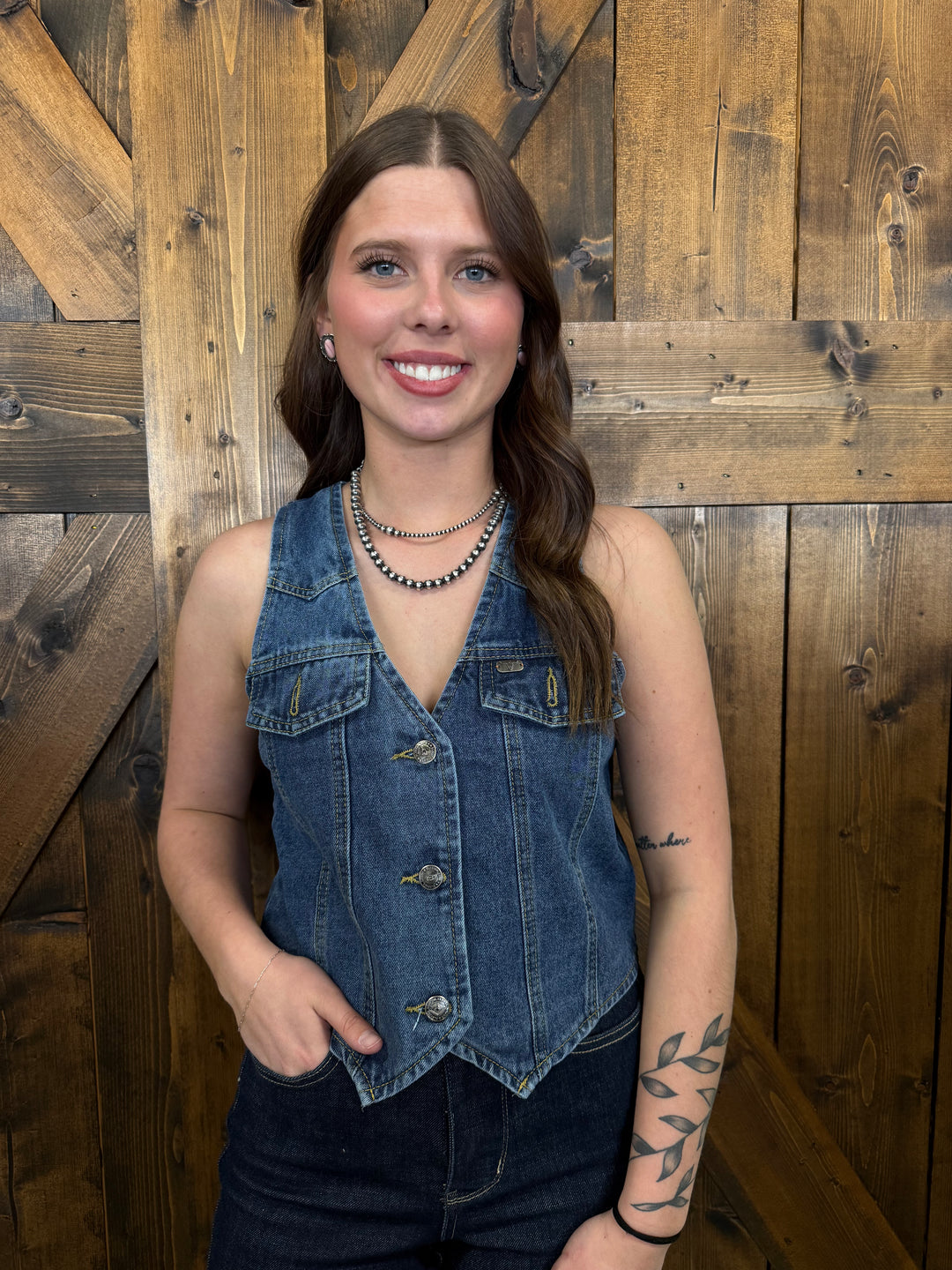 L&B Classic Mid Wash Button Down Denim Vest