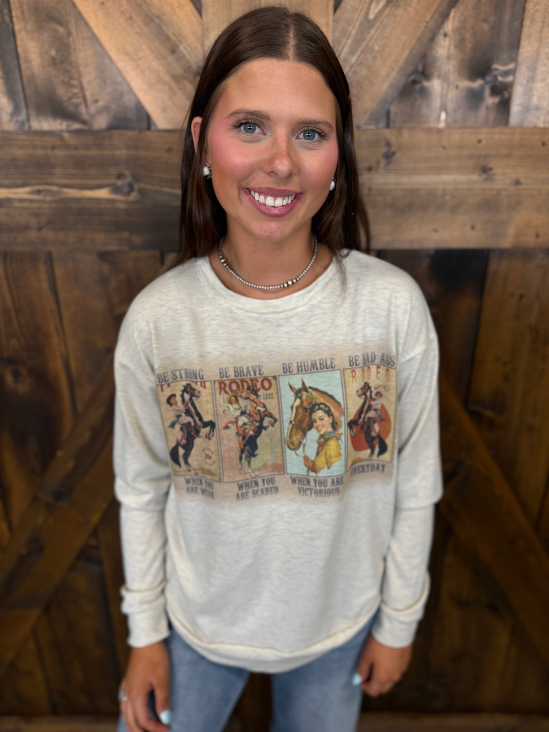 Oatmeal Vintage Cowgirl Collage Relaxed Graphic Sweatshirt